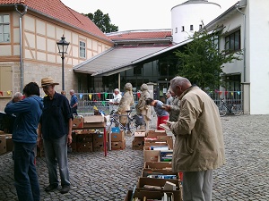 Der Vorstand bedankt sich bei den vielen Leseratten, die beim Bummel über den Töpfermarkt auf dem Halberstädter Domplatz auch am Bücherstand des Fördervereins Langenstein-Zwieberge vor bzw. im Gleimhaus Halt gemacht haben, um sich aus den reich gefüllten Bücherkisten interessante Bücher auszusuchen. Für 1 Euro pro Buch unterstützten sie damit das Projekt, die Anfertigung der verbleibenden 85 von 772 Namenstafeln für das Gräberfeld zu ermöglichen.